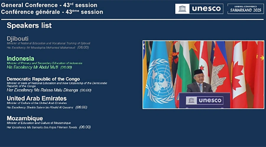 Momentum bersejarah ini ditandai dengan pidato Menteri Pendidikan Dasar dan Menengah (Mendikdasmen) Abdul Mu’ti, yang menyampaikan Pernyataan Nasional Indonesia dalam bahasa Indonesia di hadapan delegasi dari berbagai negara anggota UNESCO.
