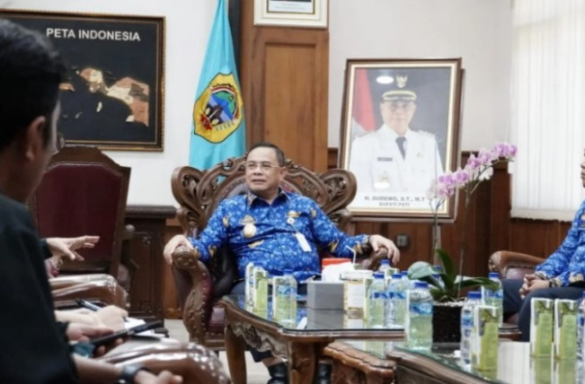Bupati Pati Sudewo saat menerima kunjungan dari jajaran PT Sarana Pembangunan Jawa Tengah (SPJT) di Kantor Bupati Pati pada Selasa (17/6/2025). (Instagram @pemkabpati)