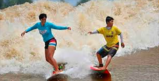 Berselancar di Sungai Kampar/Sumber: mediacenter.riau