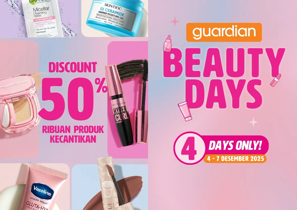Guardian Beauty Days! Diskon 50 Persen dan Voucher, Mulai 4 Desember