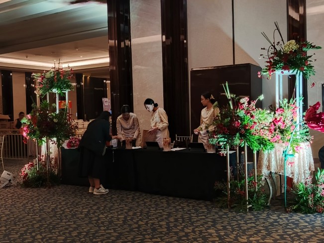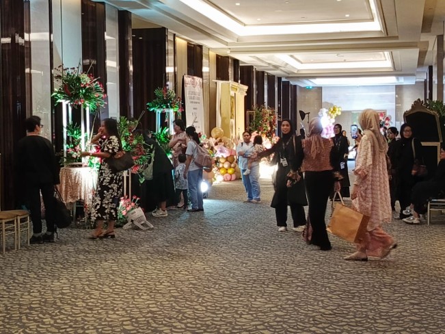 Suasana perayaan ulang tahun Ria Ricis dan Moana bertema etnik Indonesia.