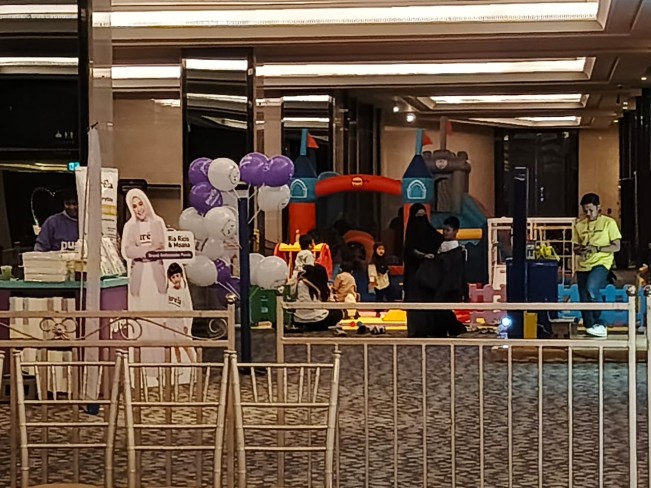 Layaknya ulang tahun anak-anak, hadir juga tempat bermain mini. Ada perosotan, ayunan dan beberapa permainan di area tersebut.