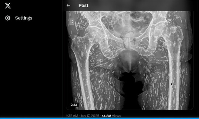 Sam Ghali, seorang dokter UGD yang mengkhususkan diri dalam keadaan darurat kardiovaskular dan radiologi darurat, baru-baru ini membagikan hasil rontgen yang tidak biasa dari area panggul seorang pasien yang memperlihatkan tubuhnya dipenuhi ratusan bintik putih.