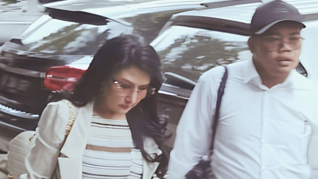 Memakai blazer putih, Lita memilih irit bicara saat ditemui awak media yang sudah menunggu sejak pagi.
