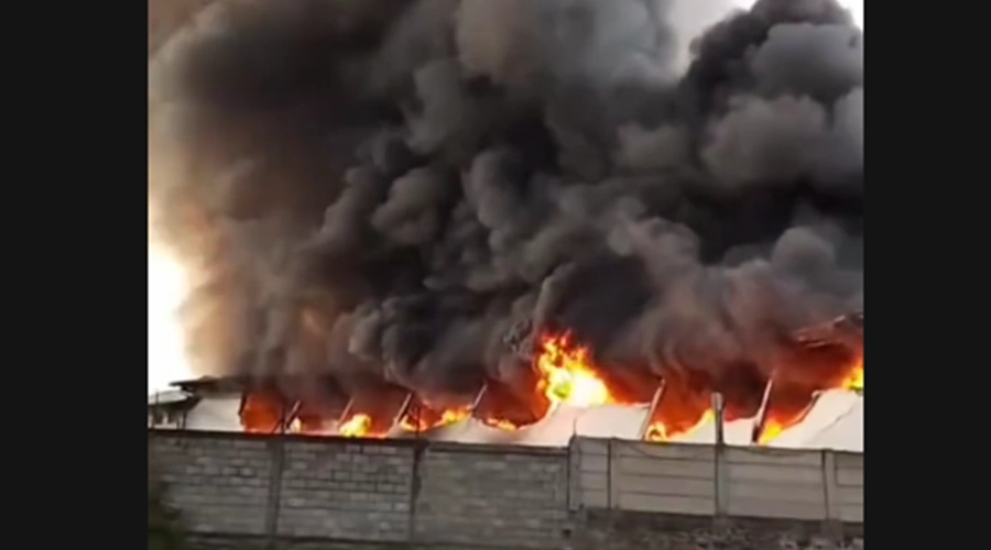 Penampakan bangunan parbrik PT Mastex Jaya Lestari, di Desa Cikasungka, Kecamatan Cikancung, Civalengka, Kabupaten Bandung, yang nyaris musnah dilalap si jago merah, Minggu (2/11/2025) [Foto: tangkap layar TikTok]