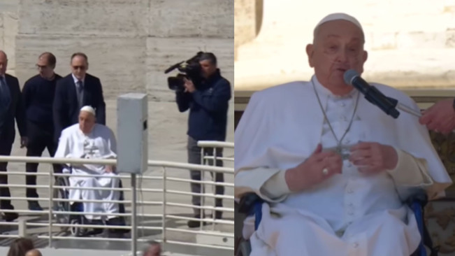 Dalam video yang dirilis media sosial Vatikan, terlihat Paus Fransiskus mengenakan kursi roda yang didorong. Paus masih mengenakan bantuan pernapasan yang menempel di hidungnya.