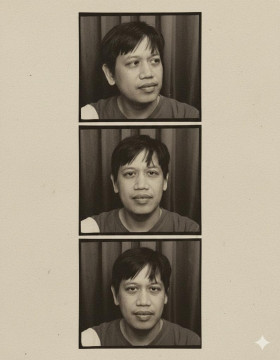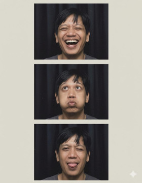Dengan generator AI, kamu tinggal ambil satu foto wajahmu, lalu masukkan ke AI dengan prompt yang tepat. Dalam hitungan detik, keluar strip photobooth tiga frame dengan gaya retro, modern, atau vintage.