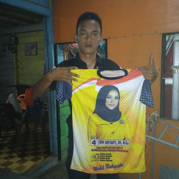 Warga Sumut memamerkan kaos bergambar wajah Erni Ariyanti Sitorus. (Instagram)