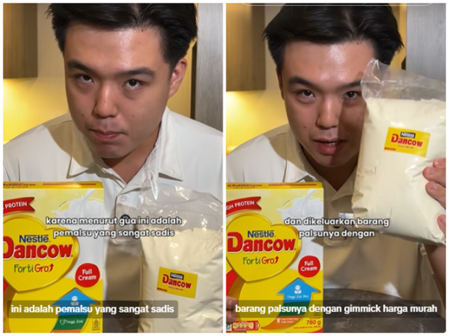 Ko Steve, pemilik akun tersebut, membandingkan susu Dancow yang dibelinya di supermarket (dalam kemasan kardus) dengan susu Dancow lainnya yang diklaim sebagai produk reject pabrik dan dibeli dari salah satu platform e-commerce.